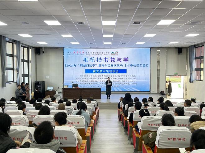 隨后,荊州市書法家協會副主席黃文泉為師生們帶來一場主題為“毛筆楷書教與學”的精彩書法培訓。他以深入淺出的方式,詳細講解了筆法關捩、字法規律、章法舉要等書法學習的關鍵要素,并特別強調了書法中“徐疾、按提、順逆、斷續”等技巧的運用。同時還穿插分享眾多古今書法佳作,引導師生們從藝術的角度去欣賞和品味書法的韻味與意境,深刻領悟書寫的精髓。