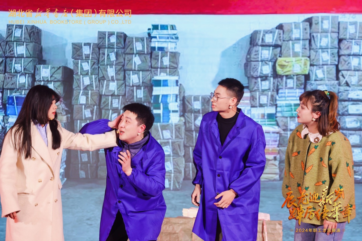 荊州市分公司通過小品《新華你我他》,講述了農歷臘月二十四(小年)這一天,老、中、青三代新華人發生在新華書店倉庫的故事,生動地詮釋了新時代新華人全力保證課前到書、全心心意為讀者做好服務,舍小家顧大家的奉獻精神。