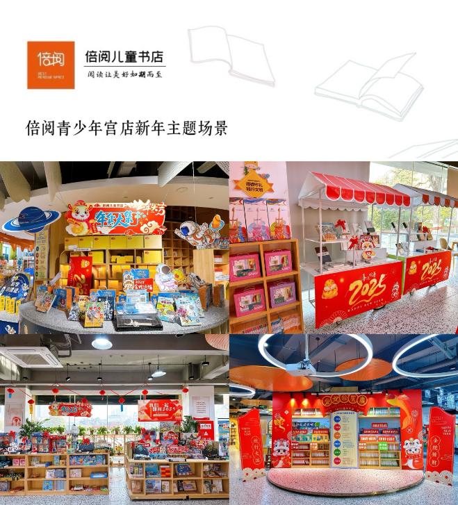 倍閱青少年宮店則以“靈蛇賀歲,書韻迎新”為主題策劃一系列精彩活動。門店推出12期“新年閱讀書單”短視頻,陳列5個新年主題場景,并舉辦6場線下新年特輯活動。其中,“揮春吉語送祝福”青少年課外社會實踐寫春聯、“新年慧悅讀”書畫制作、親子手工、美食分享、文化體驗等活動,讓孩子們度過了充實而有意義的新年。門店還設立多元禮品專臺、年貨節專臺、科學小實驗成品展示專臺等,為讀者帶來美好的購物體驗。