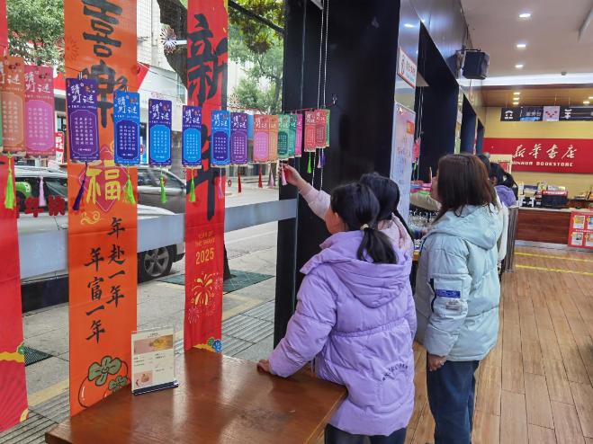 與此同時,咸安連鎖店內紅燈籠高懸,燈謎紙條隨風輕揚。“‘十五天’打一漢字”“‘紅口袋,綠口袋,有人怕,有人愛’猜蔬菜”……活動現場,涵蓋生活常識、語文知識及傳統文化元素的燈謎引得家長與孩子熱烈討論。孩子們或凝神思考,或興奮搶答,在寓教于樂中拓展知識邊界。一位家長感慨:“孩子不僅玩得盡興,還記住了不少傳統民俗故事!”活動尾聲,猜中燈謎的孩子們手持精美獎品笑逐顏開,為節日增添濃濃喜悅。