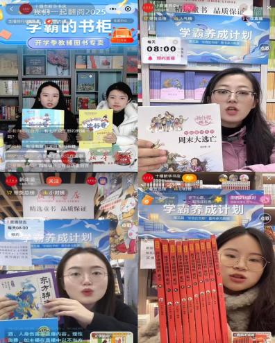 線上,創建分級教育社群,安排專人24小時在線,為廣大師生和家長提供答疑解惑、圖書推薦、圖書預訂、團購接龍等多元化個性化購書服務;開展覆蓋公域和私域的直播帶貨活動,依托三個抖音賬號及一個微店賬號全力推廣。公眾號、視頻號、社群以及朋友圈等多渠道的配合宣傳,有效提升了開學季活動的知曉度和參與度。