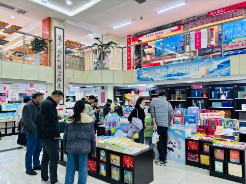 線下,分公司連鎖店內充分利用電子屏、展板、海報以及創意陳列,精心營造出開學季全場景主題氛圍;設置多個主題展臺,涵蓋“同步教輔學習區”“課外閱讀拓展區”“學習工具箱專區”“同步字帖練習區”及“寫作加油站”等,結合當前家長和學生對于教輔資料和閱讀產品的實際需求,精準選品、快速上架,全方位優化服務體驗。店外同步開展流動書展,精選教輔資料、工具書及文創產品,為學生們提供極為便捷的購書渠道。