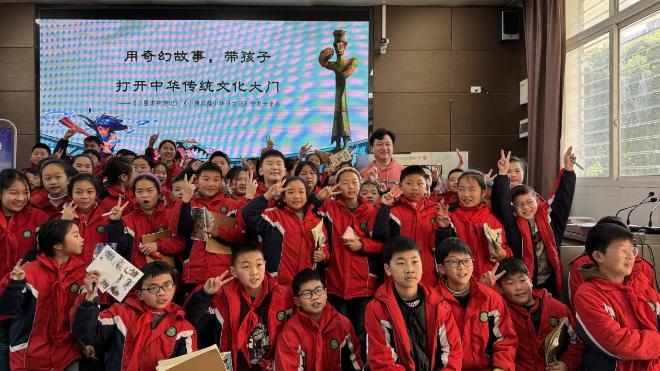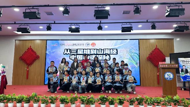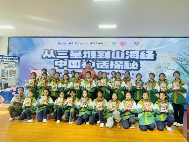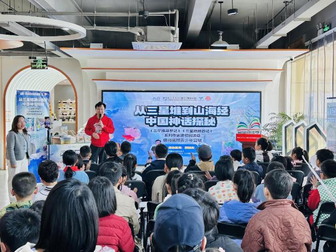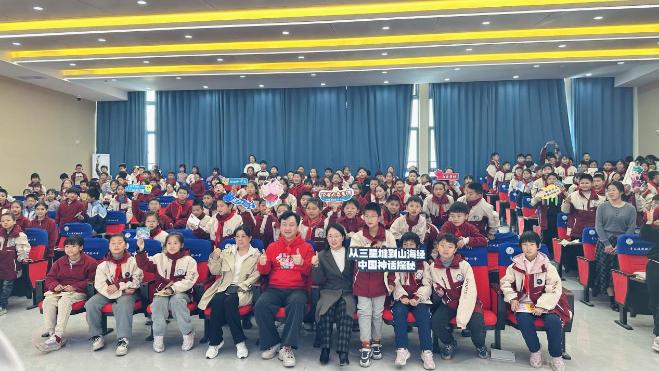3月21日在襄陽市第二十三中學和東津新區襄陽四中星匯城實驗小學,郭曉東老師通過文物圖片、動畫短片等載體,串聯三星堆神話意象,揭示神話背后的民族精神傳承。活動現場同步陳列了三星堆系列書籍,并設置了知識競答、作者答疑等互動環節,進一步激發了學生們對神話與歷史的熱情。