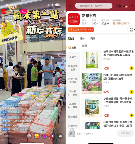線上,多維發(fā)力,依托新媒體平臺持續(xù)推送開學(xué)季專屬福利與互動內(nèi)容,深度觸達(dá)本地家長群體,累計覆蓋超5萬余人次;創(chuàng)新采用“知名達(dá)人探店+店員直播接力”組合模式,雙重助力團購券銷售,直播場均銷售取得突破;同步上線“美團閃送”即時購書服務(wù),上線僅一周訂單量激增,成為線上銷售新的增長點。線下,場景賦能,從場景營造、商品陳列、優(yōu)惠聯(lián)動三方面入手,打造沉浸式線下消費場景,全方位滿足學(xué)生多元消費需求。兩天時間,線下線上銷售同比增長31.8%。