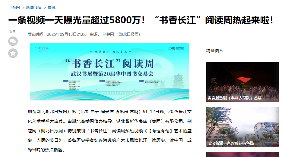 荊楚網 | 一條視頻一天曝光量超過5800萬!“書香長江”閱讀周熱起來啦!