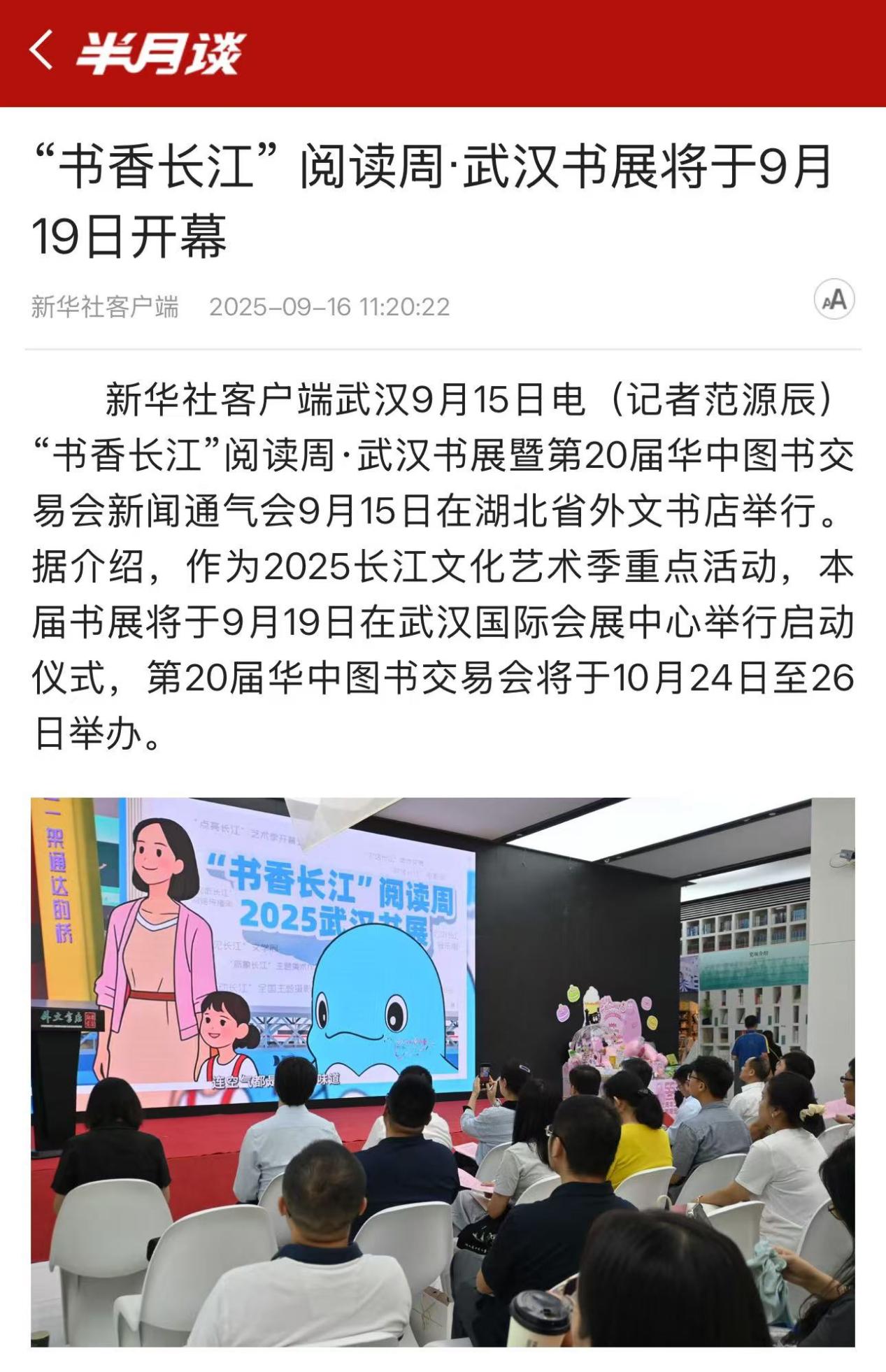 半月談 |“書香長江” 閱讀周?武漢書展將于9月19日開幕