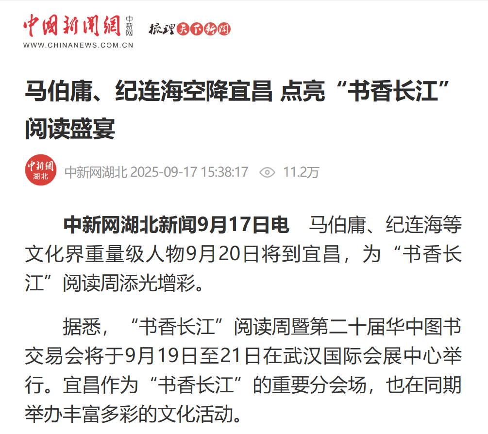 中國新聞網 | 馬伯庸、紀連海空降宜昌 點亮“書香長江”閱讀盛宴