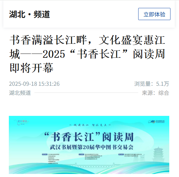 新華社 | 書香滿溢長江畔,文化盛宴惠江城——2025“書香長江”閱讀周即將開幕