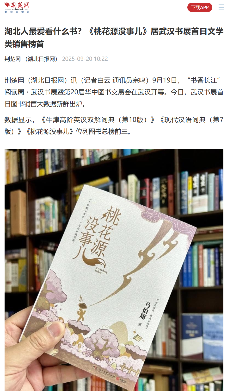 荊楚網 | 湖北人最愛看什么書?《桃花源沒事兒》居武漢書展首日文學類銷售榜首