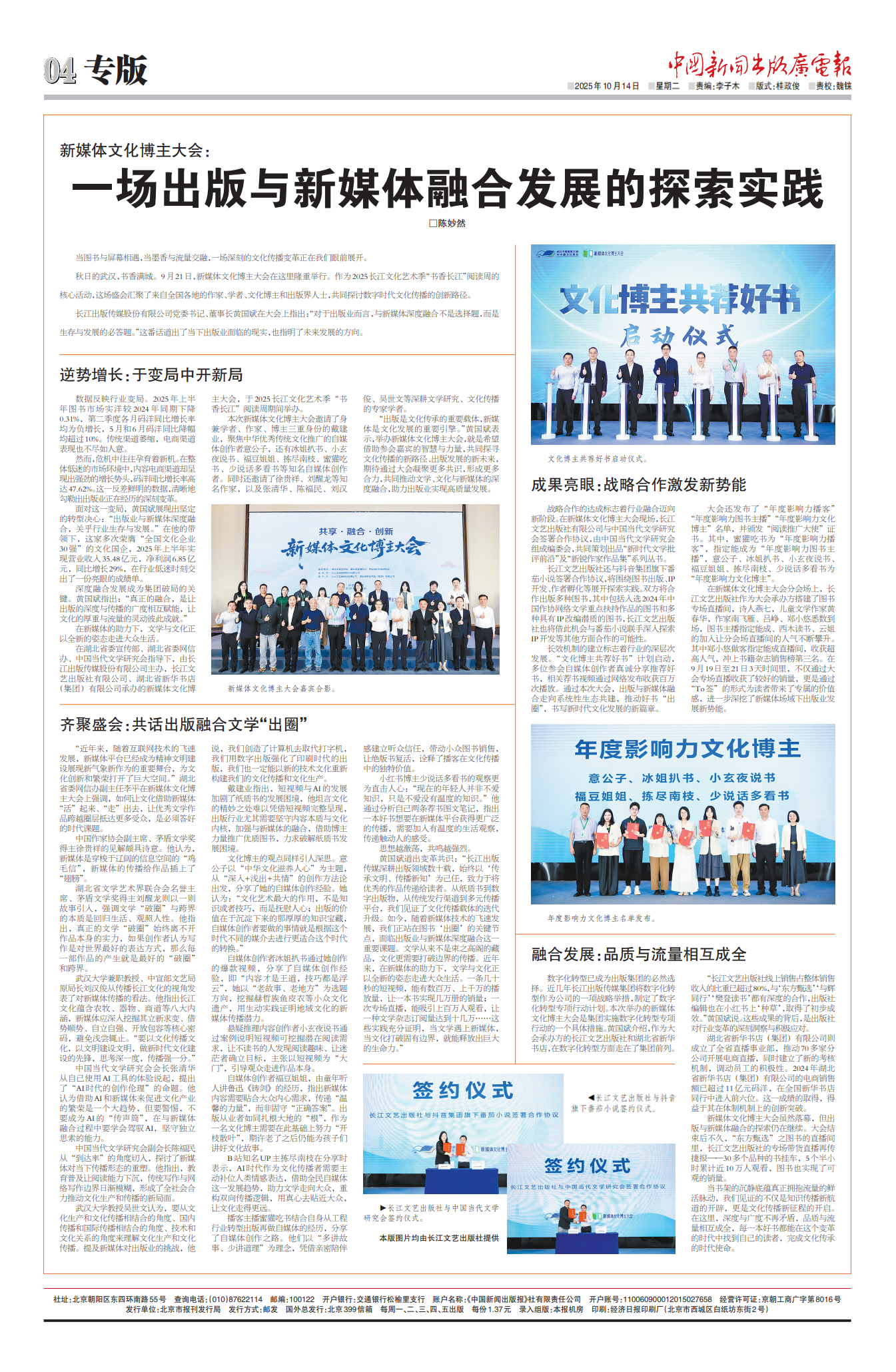 中國新聞出版廣電報 | 新媒體文化博主大會:一場出版與新媒體融合發展的探索實踐