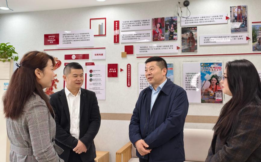 11月20日,新華書店集團黨委書記、董事長邱從軍一行到荊州區域調研,實地察看荊州市分公司連鎖店新媒體直播、AI自習室、托管服務等新型運營場景,詳細了解實體書店轉型升級與新媒體融合發展的實踐成效,座談聽取區域各分公司全力沖刺年度目標任務、轉型創新發展情況匯報及“十五五”發展建議,并與荊州市委宣傳部常務副部長吳莉、副部長胡俊圍繞服務地方文化教育事業高質量發展進行交流。